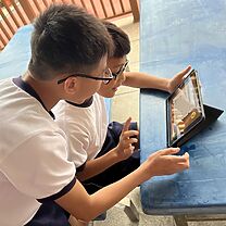 學生走到學校的不同區域,透過平板電腦的相機掃描圖卡上的影像,利用擴增實境技術(AR),讓學生即時看到立體的影像,協助學生有效地學習,提升學生的學習興趣。