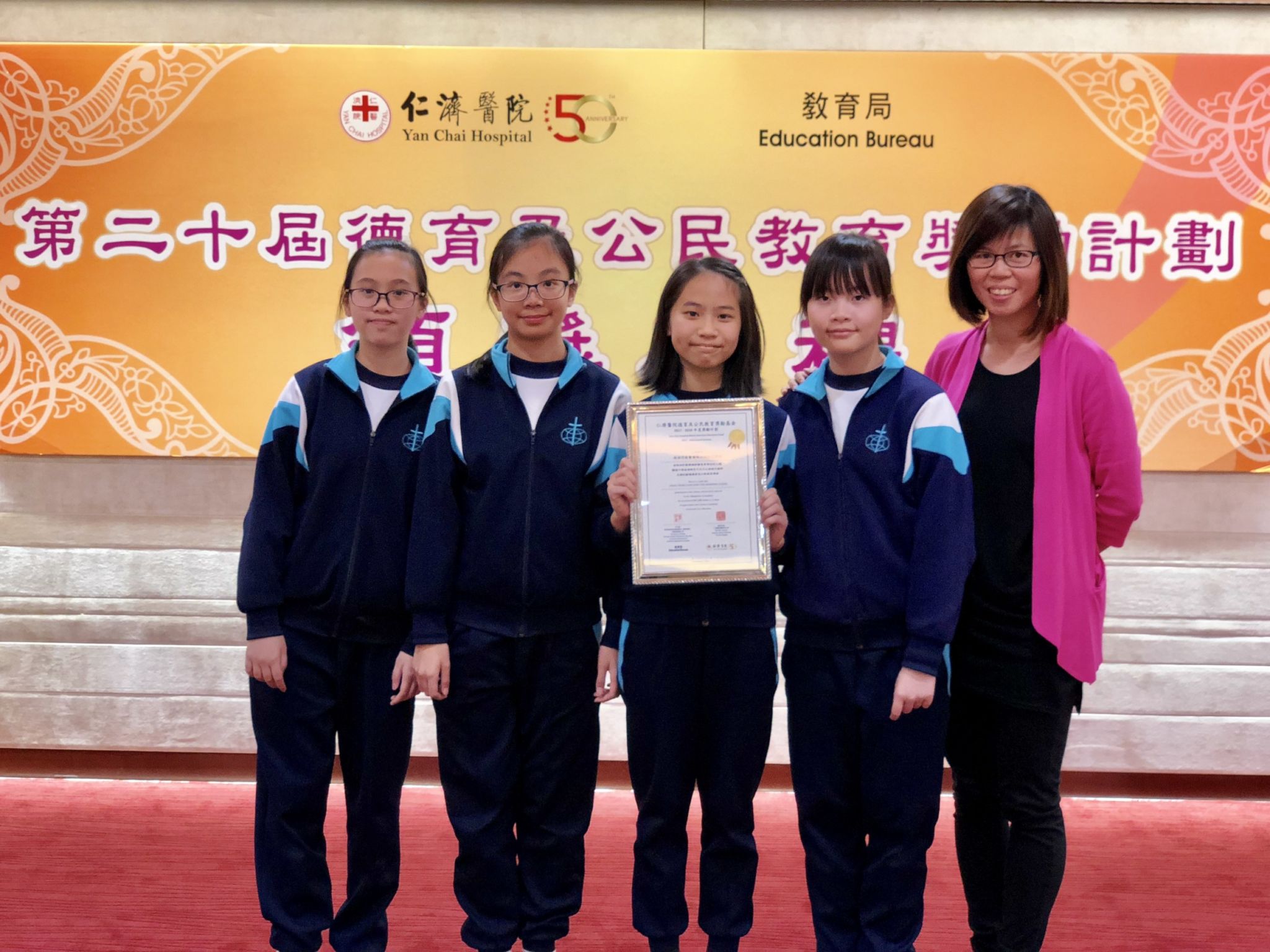 本校的「愛潤育苗 健康成長」健康校園計劃」於仁濟醫院德育及公民教育獎勵基金「第十九屆德育及公民教育獎勵計劃」脫穎而出,獲得優異榮譽。