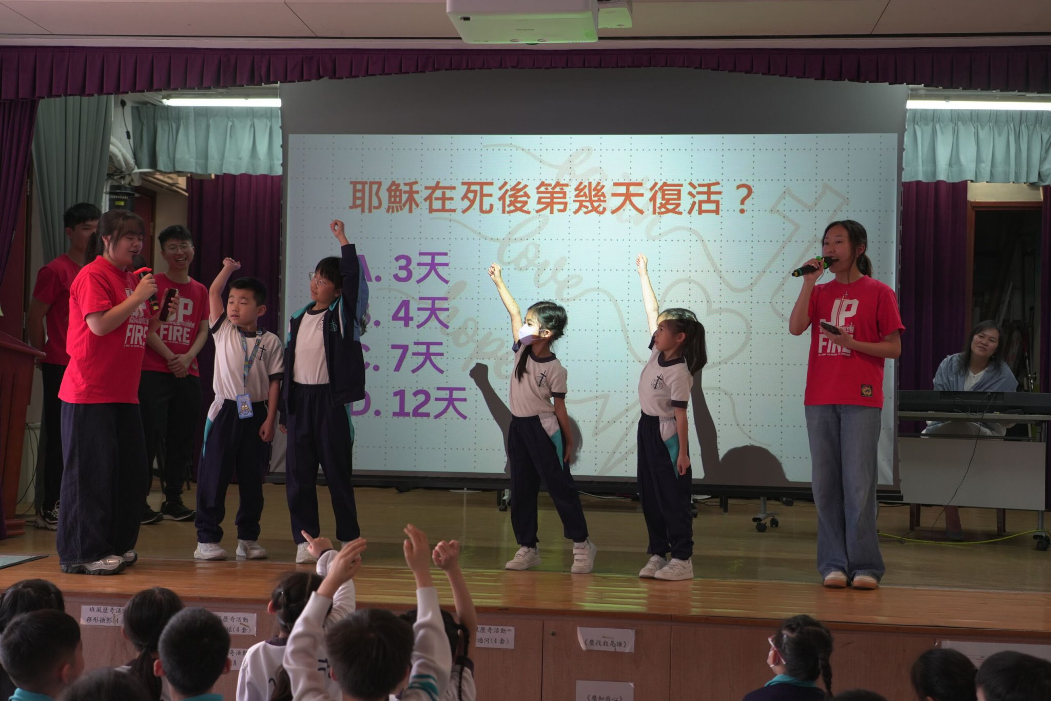 - 本校於復活節邀請跑樓梯運動員林嘉明傳道到校主持復活節崇拜,透過詩歌及訊息,讓同學了解復活節的意義和耶穌犧牲的愛。