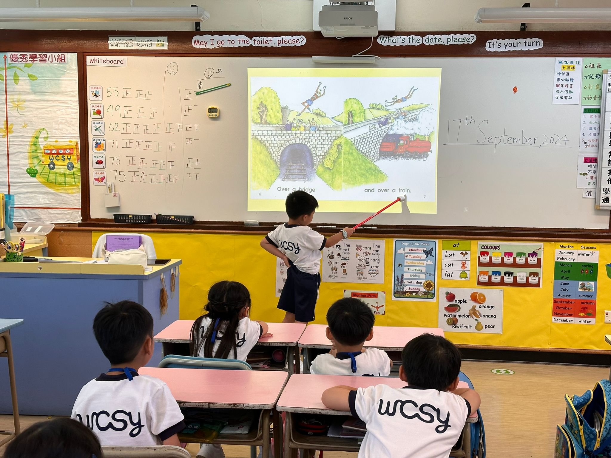 • Implement the developed English curriculum which focuses on reading to writing in a variety of interesting contexts. We use story-based approach in P.1-2 to enhance students’ motivation in learning English. For P.3-4, we integrated the social and emotional strategies into the English curriculum. We join the school support service this year. For P.5-6, we use project-based approach in some of the modules.