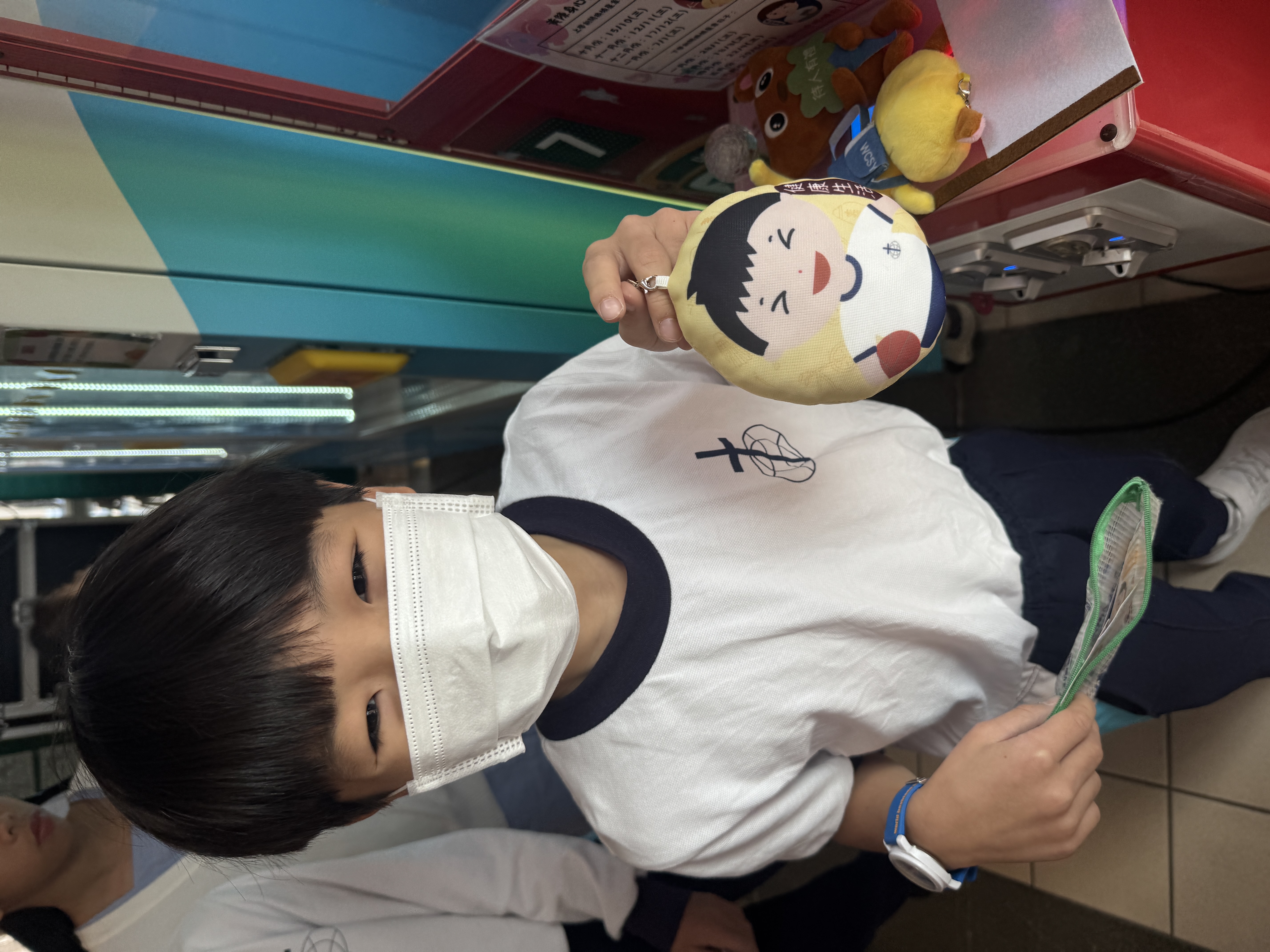 * 憑一個「有品星章」,學生可以到抓娃娃機(夾公仔機)抓「黃陳品德小玩偶」。如抓不到,亦可獲小書籤一張,九張可以自選一隻小玩偶。