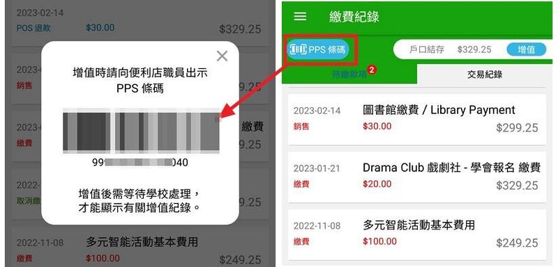 eClass parent apps – 更多(三) – 繳費紀錄 – PPS條碼