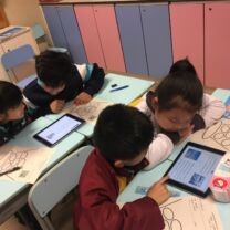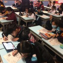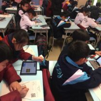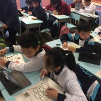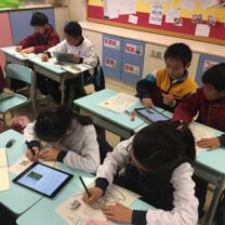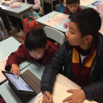 四年級學生在課堂上透過平板電腦學習,學習一些地球上的自然景象,如極地、沙漠、草原、山脈和熱帶雨林,然後用「特徵列舉」學習策略,組織重點,然後再透過「google 地球」找出它們的所在位置。