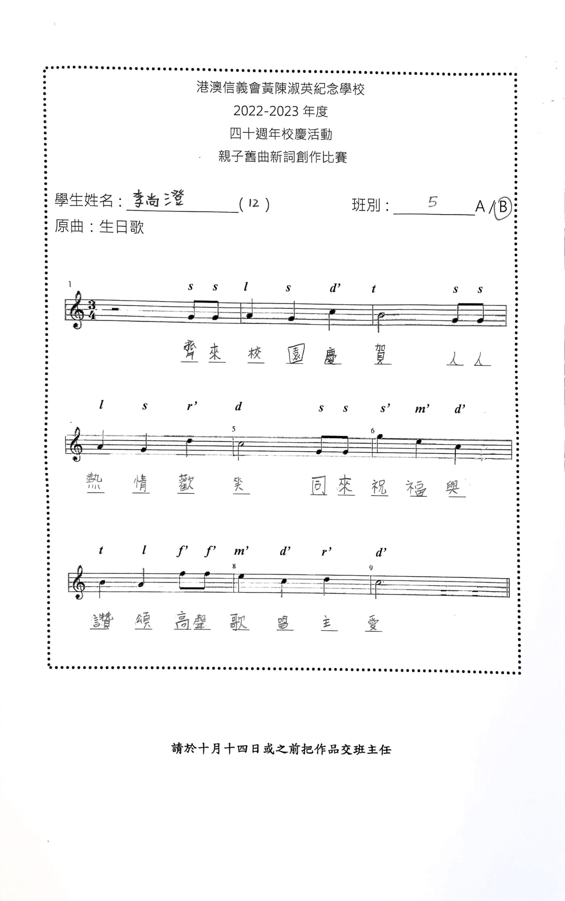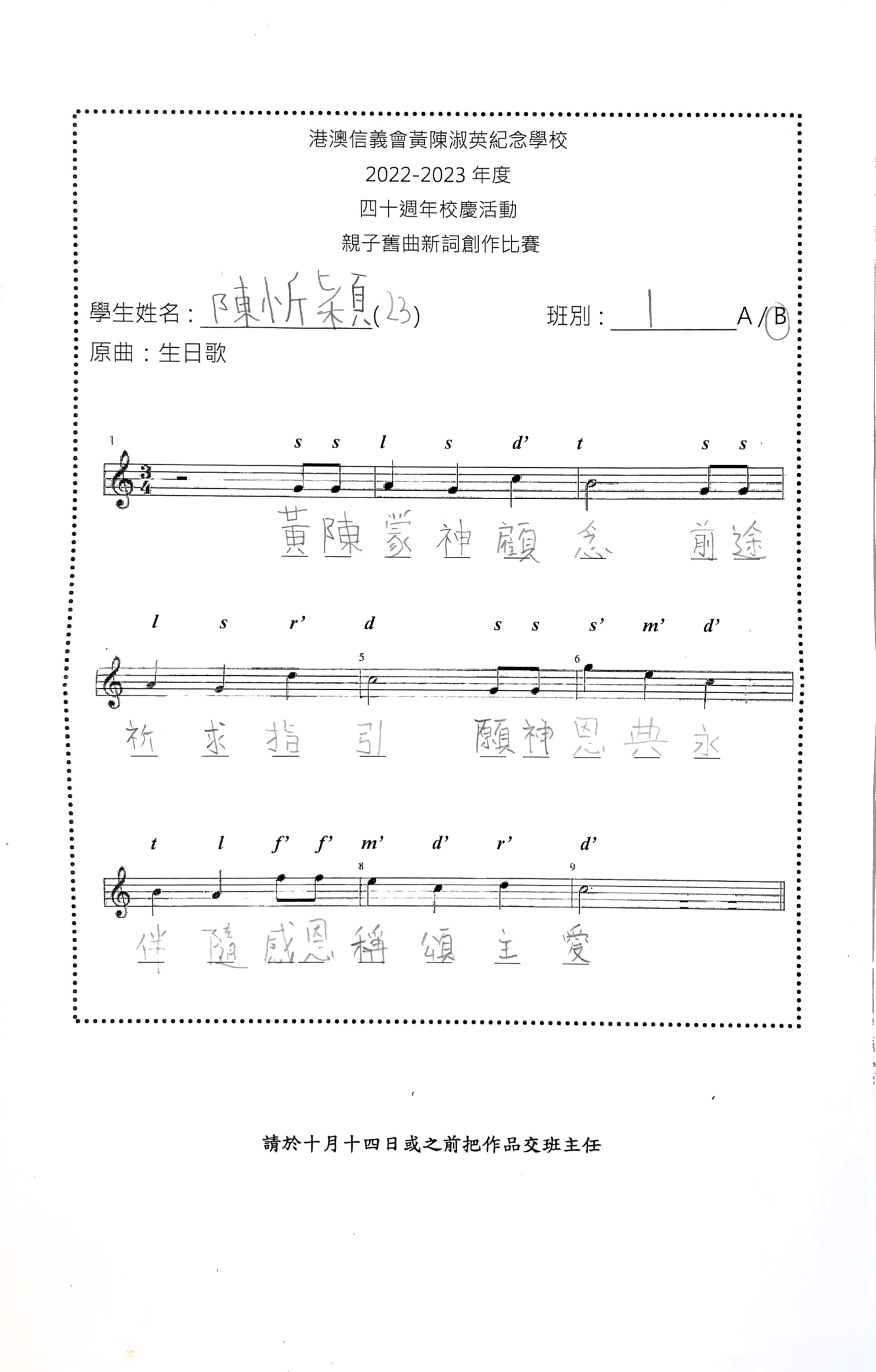 初級組季軍:1B 陳忻穎