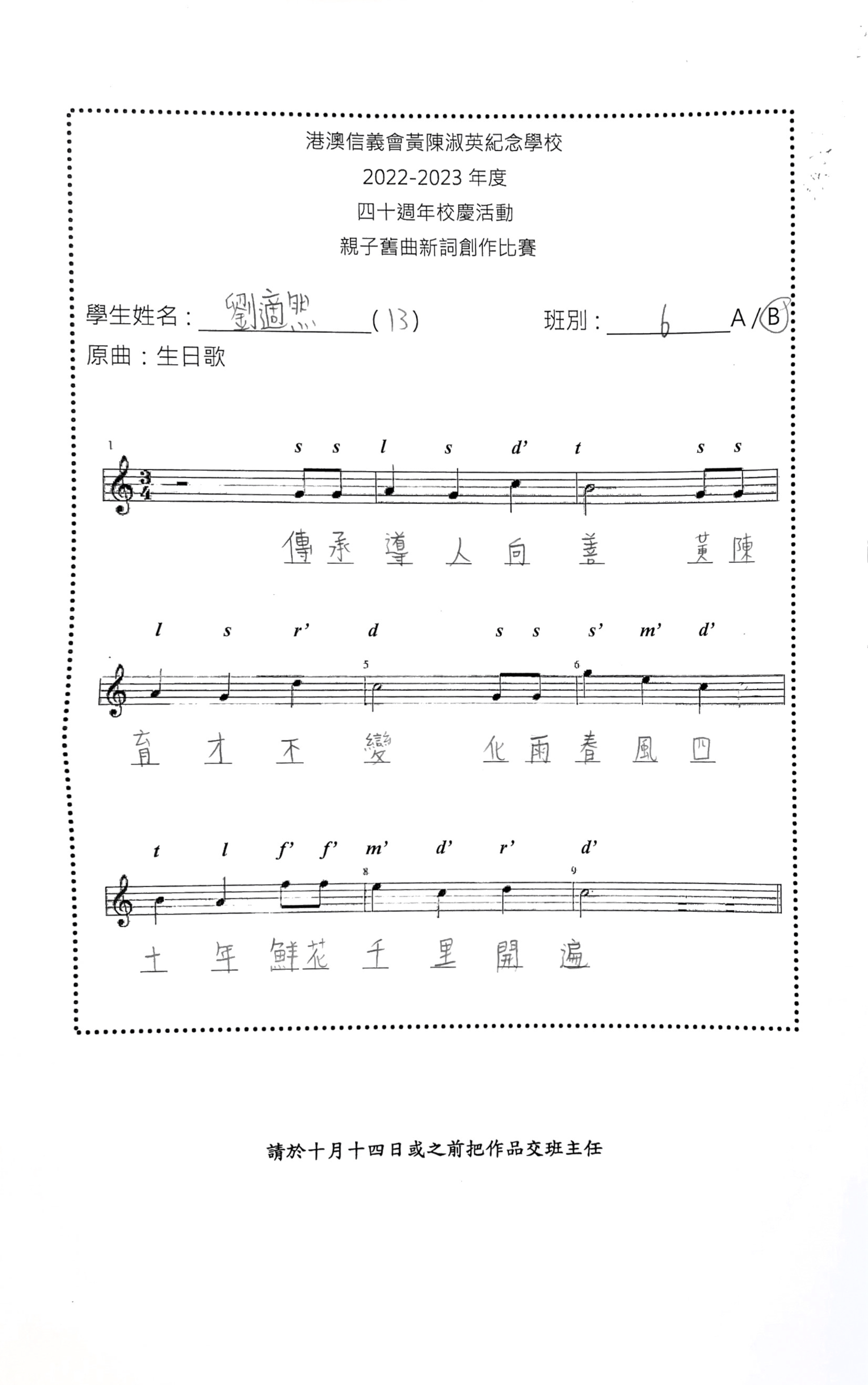 高級組季軍:6B 劉適然