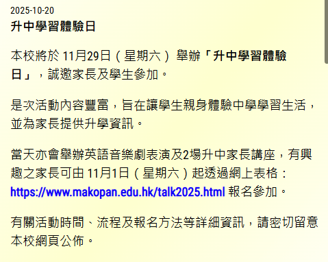 2025/11/29:佛教沈香林紀念中學「沈中資訊日」升中簡介會