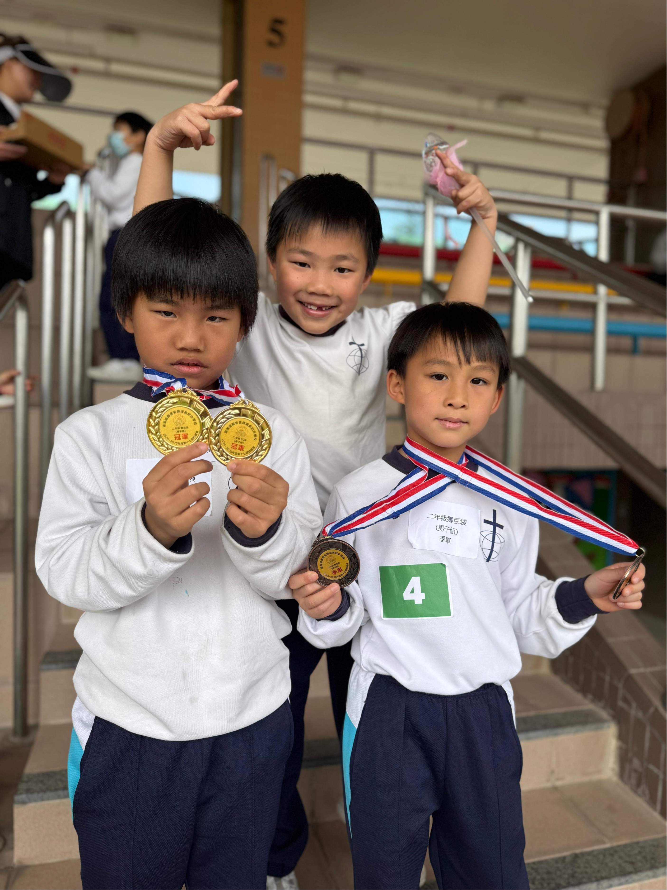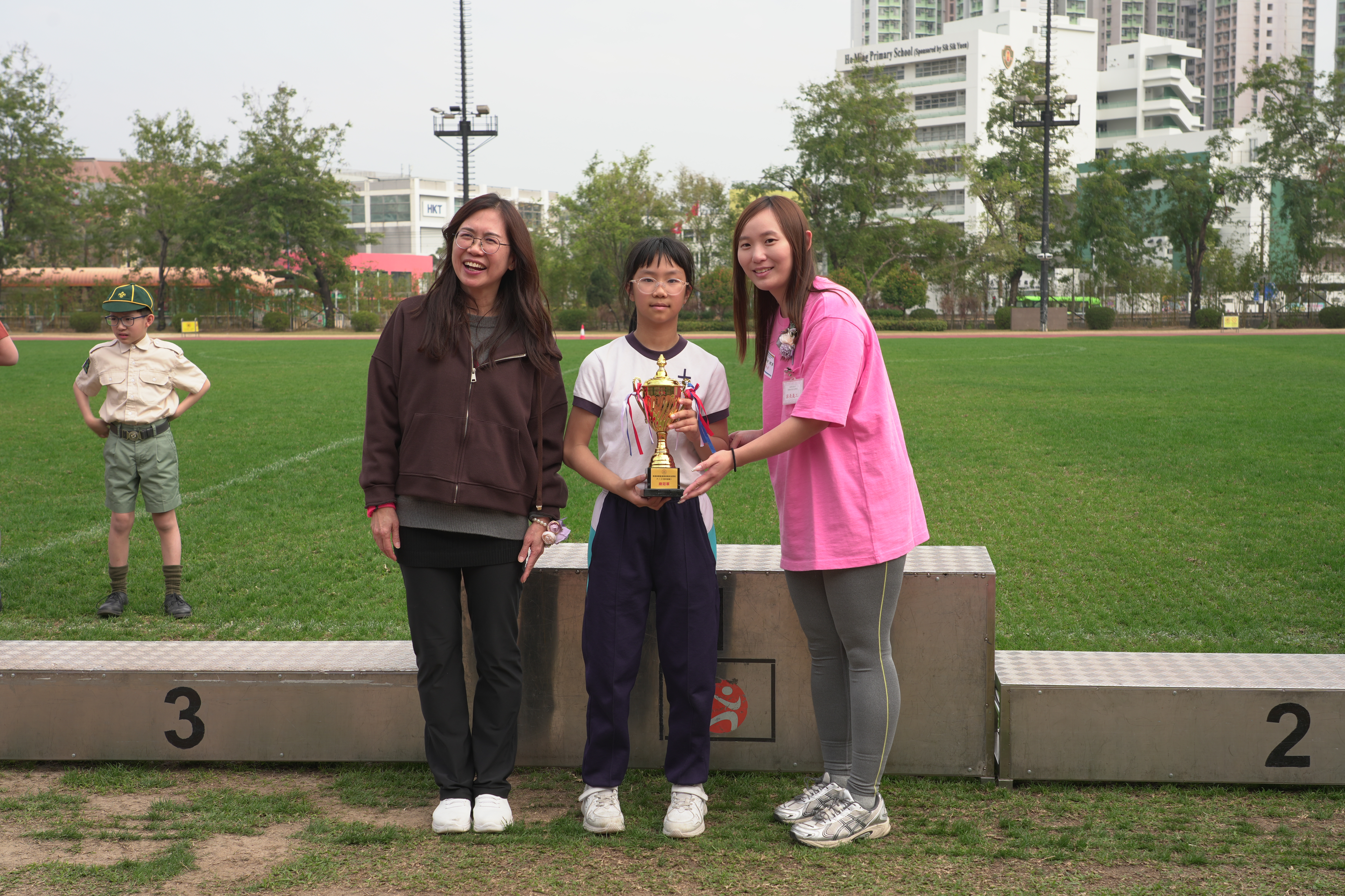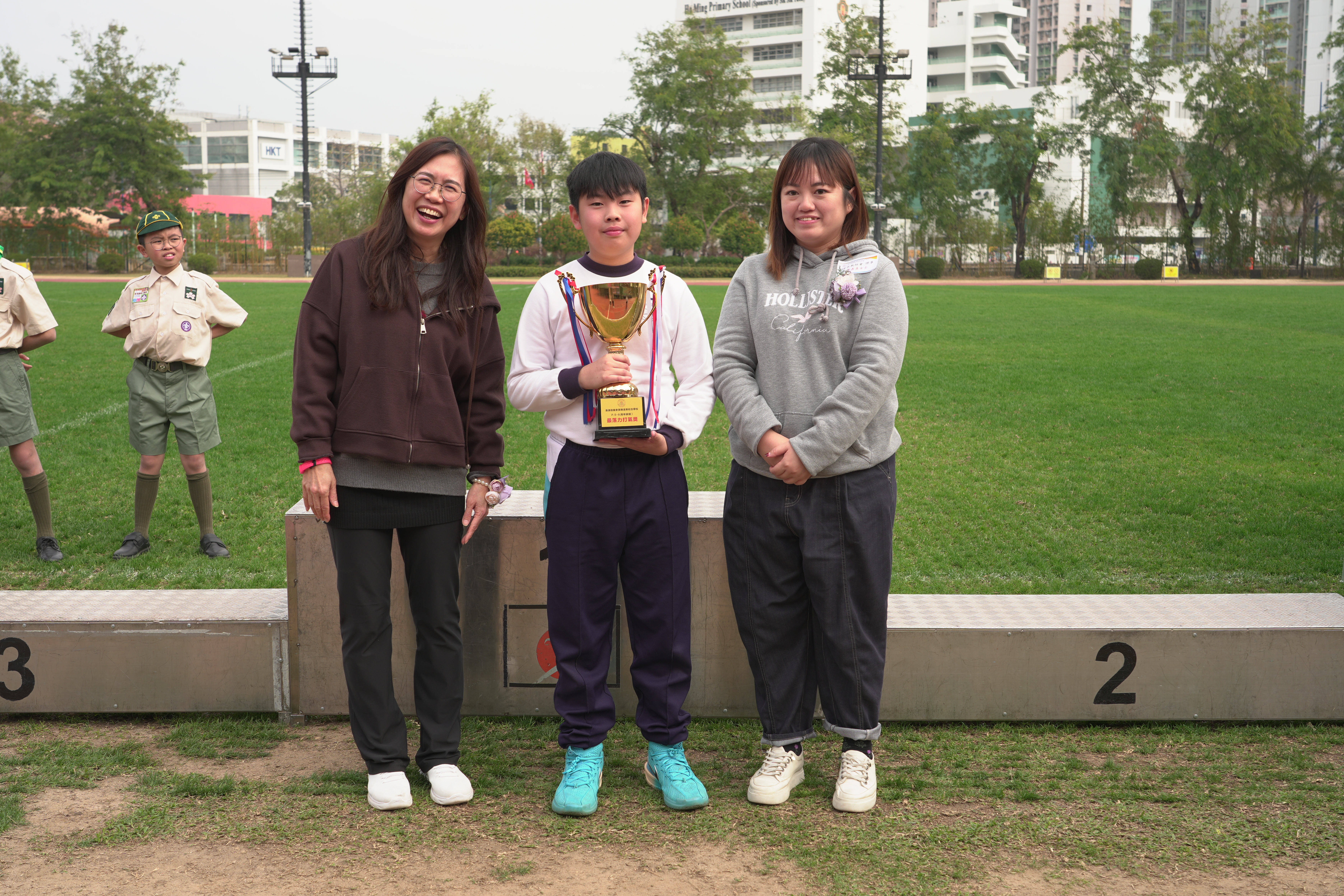 2025-2026年度第十七屆校運會在天水圍運動場圓滿舉行。是次校運會主題是「匯動力,展潛能」,讓學生揮灑熱血,快樂享受參與運動的樂趣。我校的一、二年級同學都是第一年參與校運會,當天校長給予全體同學鼓勵和訓勉,激勵同學們在運動場上發揮最佳的表現。 運動員們心情都十分雀躍,全情投入比賽,以堅定的步伐和無比決心,爭取著最佳成績,當日更有不少運動健兒打破本校歷屆不同項目的最佳紀錄。,實在可喜可賀!觀眾席上的老師和學生都為同學此起彼落的加油鼓勵,將全場氣氛推到最高峰。 而在校運會前已順利完成了【第十七屆校運會場刊封面設計比賽】,收到了許多同學的精美參賽作品,結果5A班張睿文同學獲得冠軍、亞軍是6A班高綽遙、季軍由5B謝芷琪獲得,而殿軍是5B鄧以信同學。 本屆校運會得以按時順暢完成,全賴全體教職員工各施其職,特別感謝體育科任老師、各工作崗位統籌通力合作,各位家長義工、校友會義工、友校中學義工、服務生同心協力及親子接力的家長配合支持,令是次運動會得以順利圓滿舉行!衷心感謝全體黃陳人!