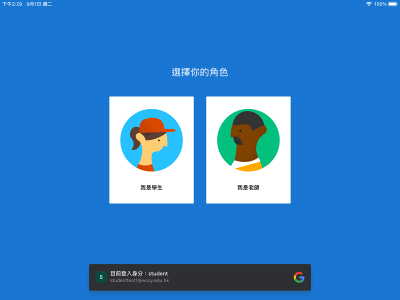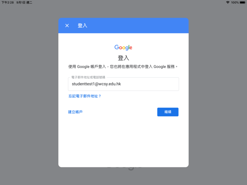 - 輸入學校提供的學生電子郵件(Gsuite帳戶格式: [email protected])