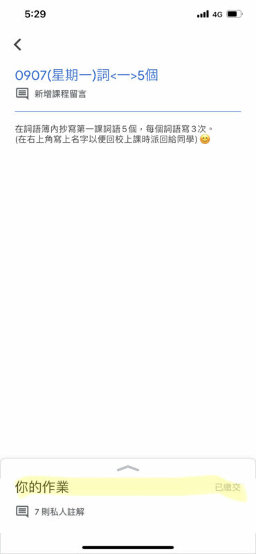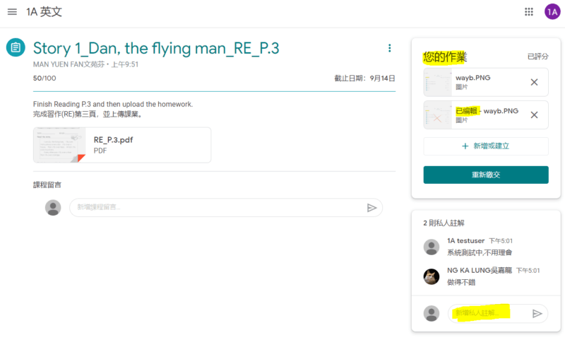 >私人註解:可以看到老師給學生的留言,學生亦可以提問或回答老師的問題