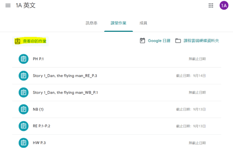 - 方法2:依序按一下目標課程 > [課堂作業] > [查看你的作業]。
