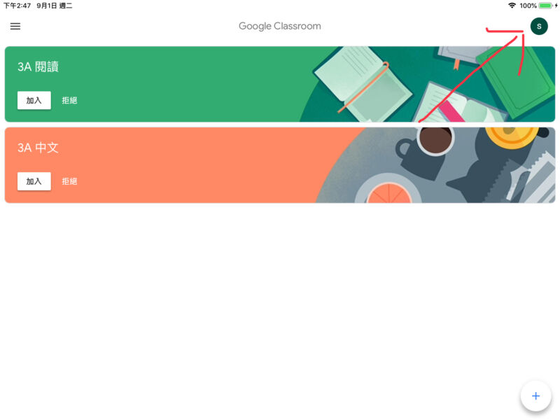 如果您已登入多個帳戶,而且需要切換至您在Google Classroom 中使用的帳戶:
