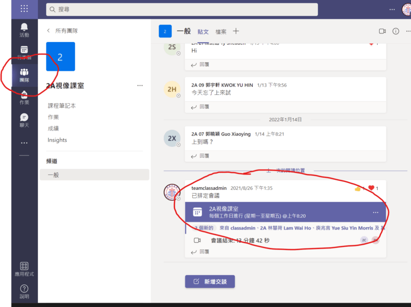 4. 點擊 一般頻道內已排定的XX班視像課堂 -> 點擊 詳細資料